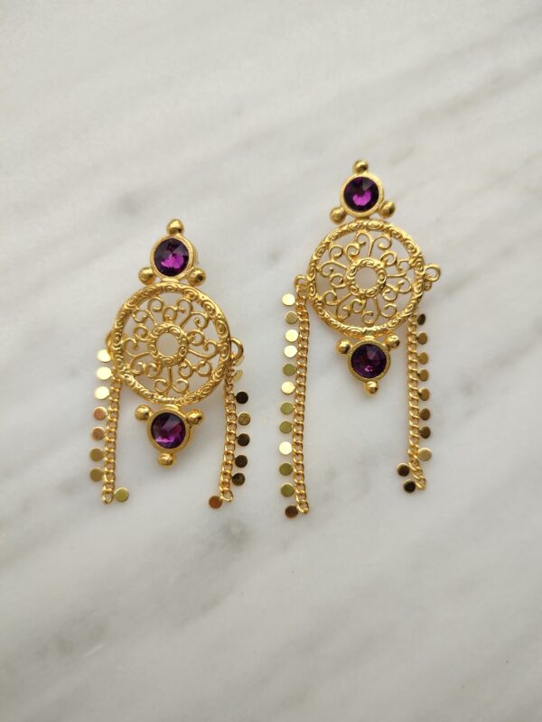 Gold plated silver earrings 925 with black rutile, hematites and rhodolite – S84935