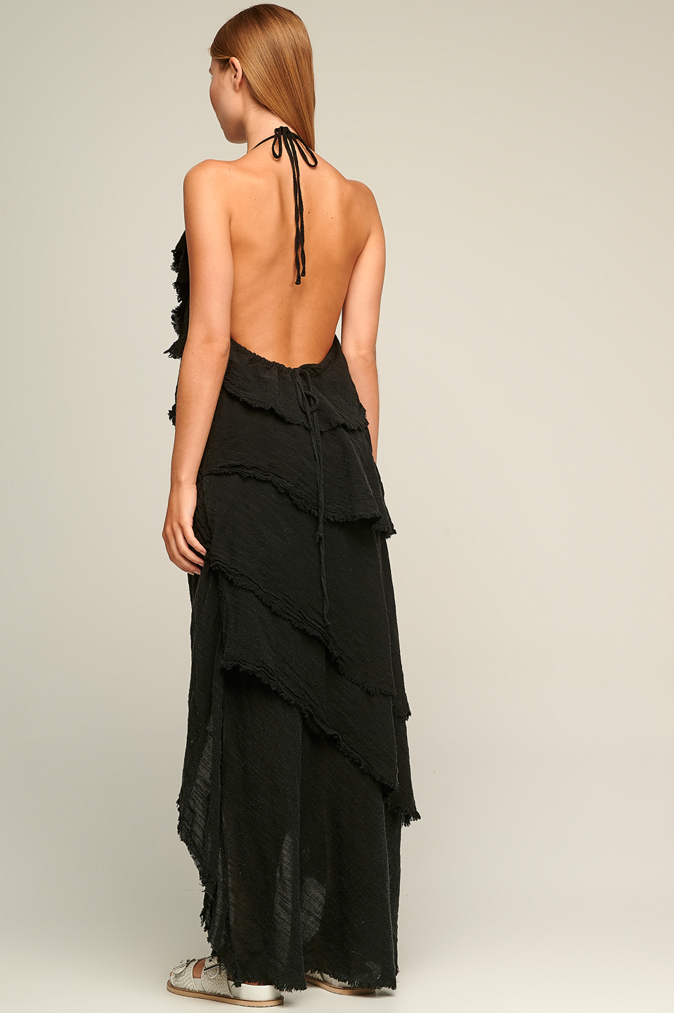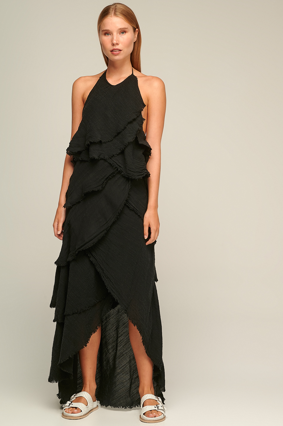 Black Linen Cotton Cut Out Maxi Dress – S22P1289