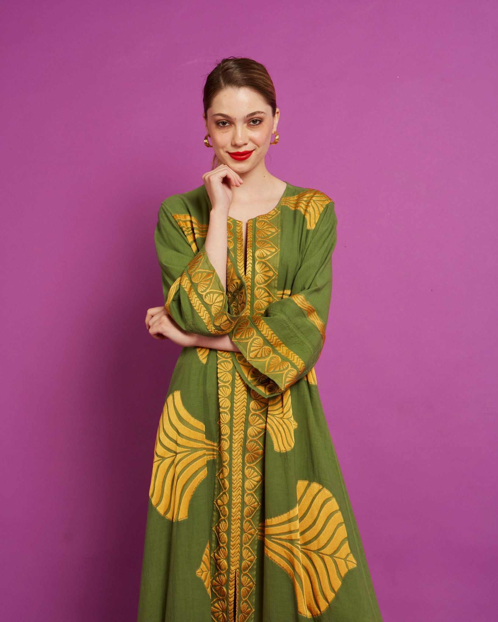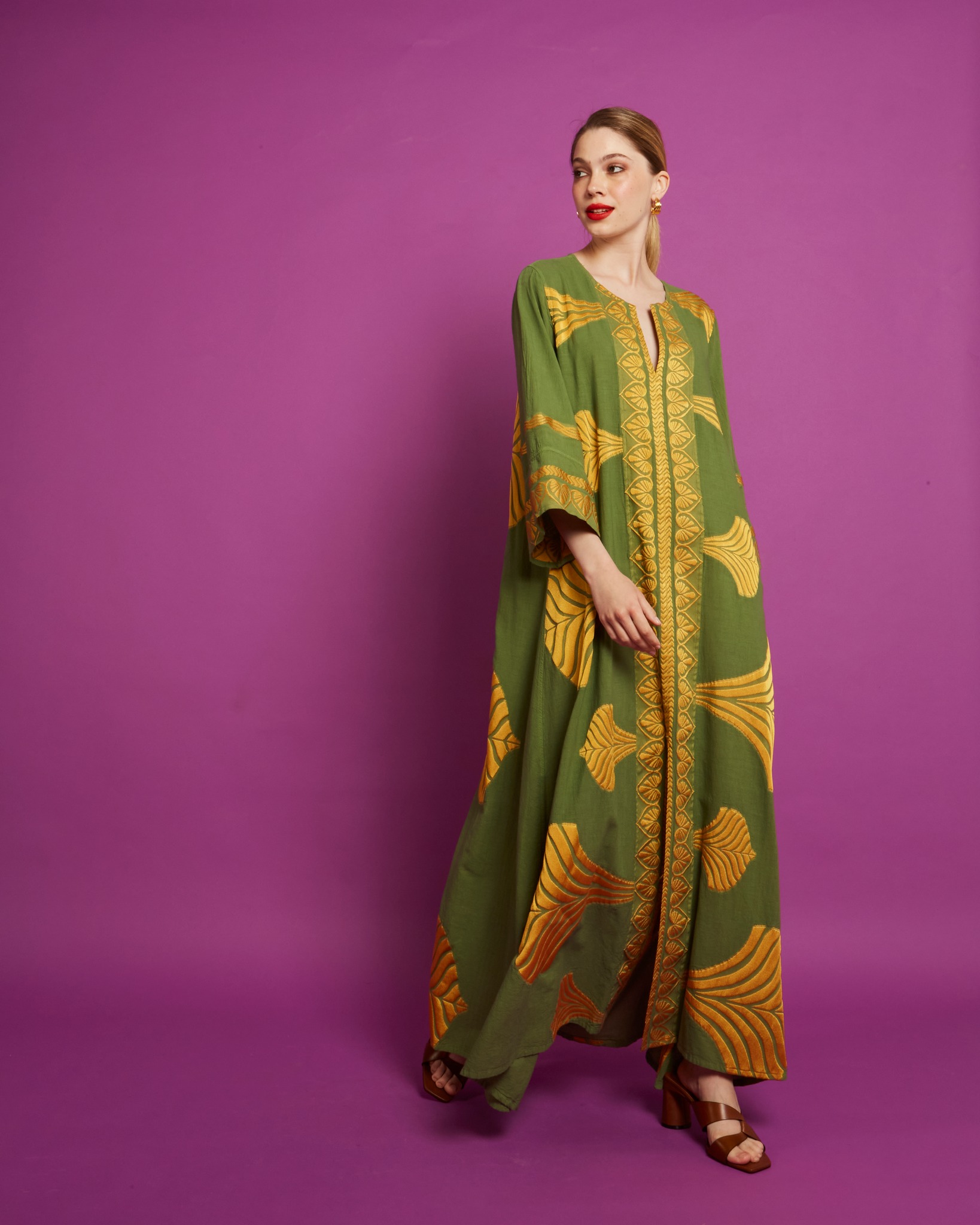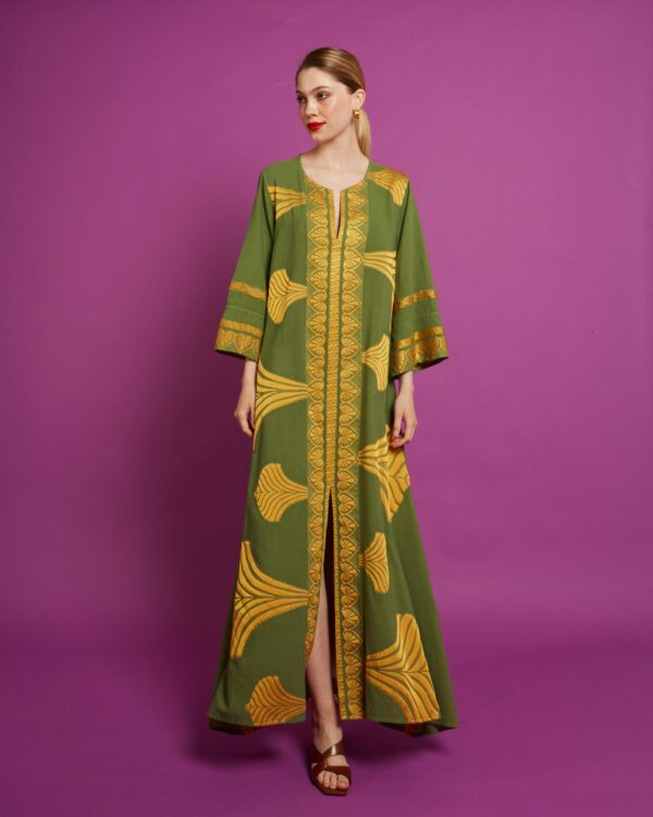 – Σύνθεση : 52% cotton 48% polyester – Maxi φόρεμα με 3/4 μανίκι και άνοιγμα στο κάτω μέρος – Άνετη γραμμή