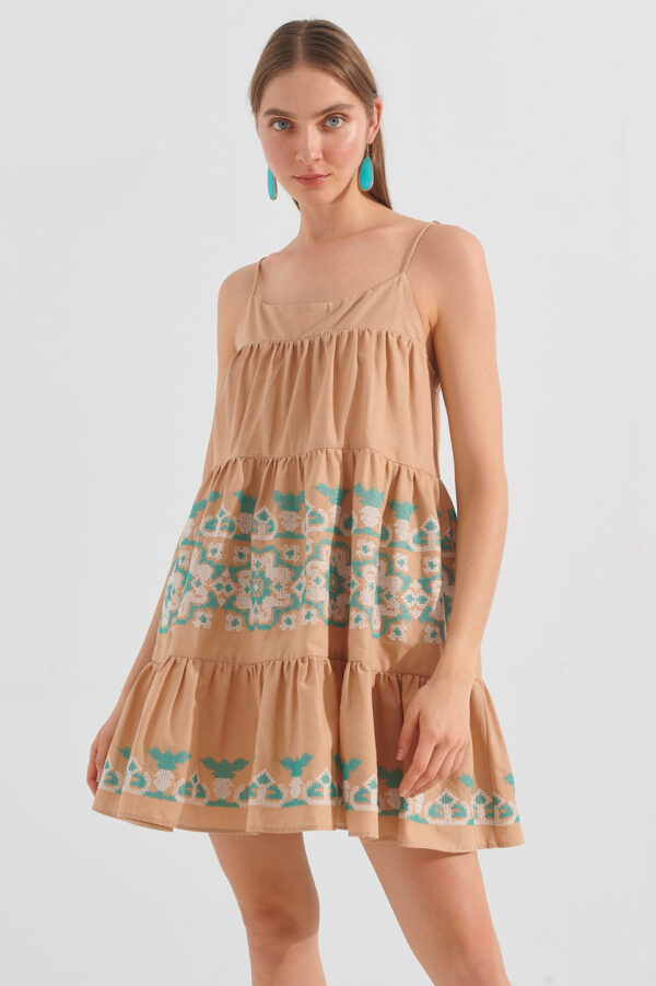 Embroidered Mini Dress – S22A3074 – BEIGE