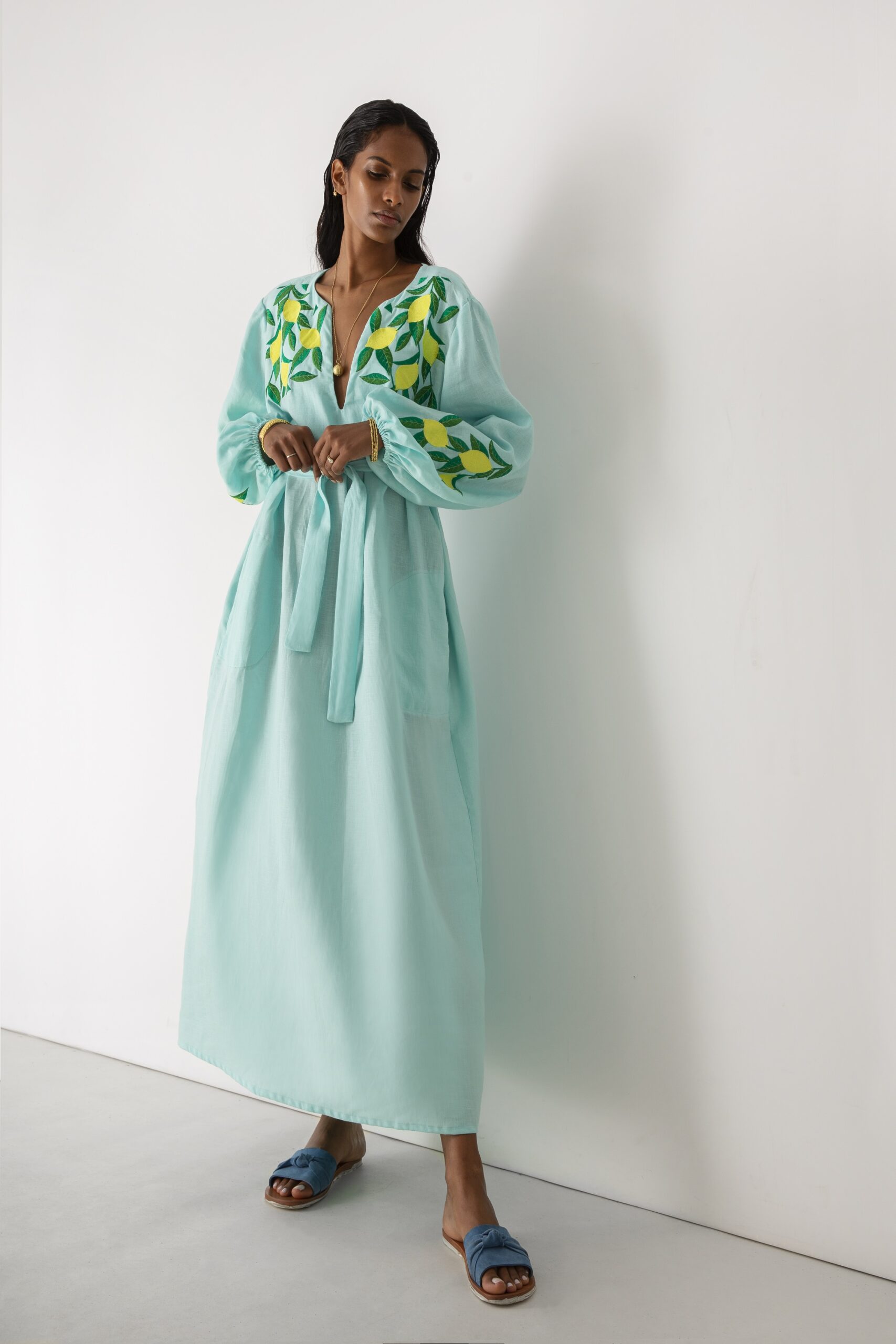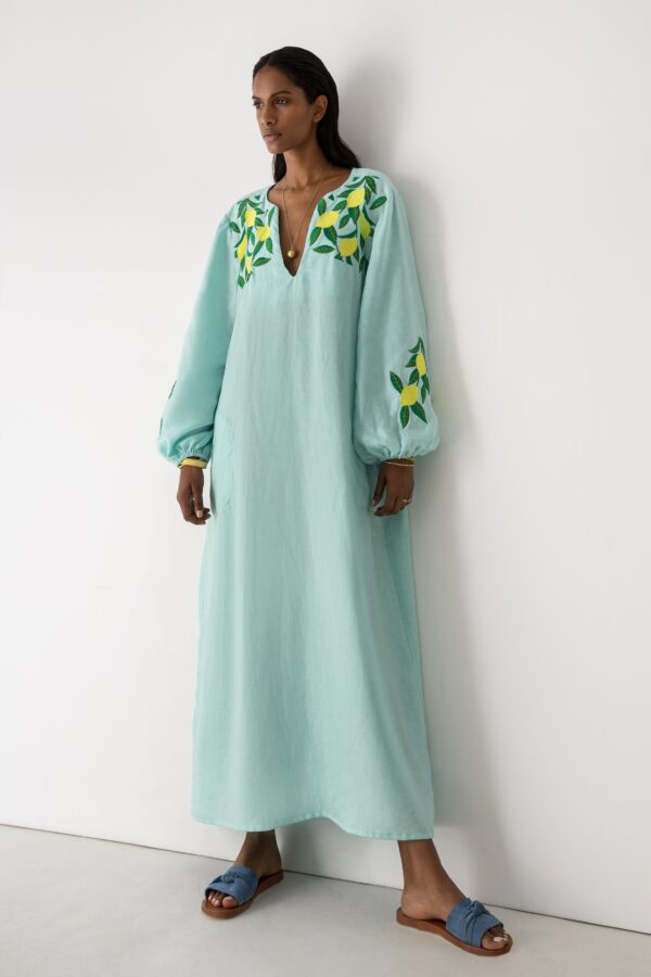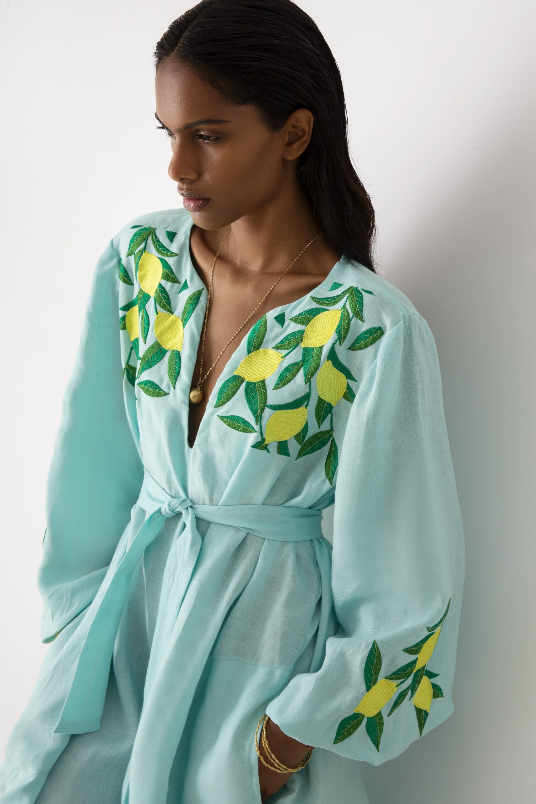 Lemon Aqua Embroidered Dress - YK23 quantity