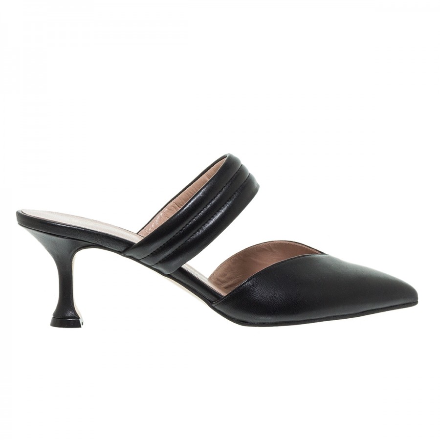 – Μαύρα δερμάτινα mules – Υλικό: 100% δέρμα – Εσωτερική επένδυση : δέρμα – Ύψος τακουνιού : 6 cm