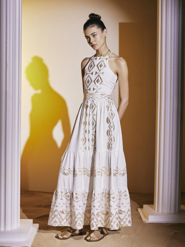 – Αμάνικο φόρεμα με βολάν στη φούστα