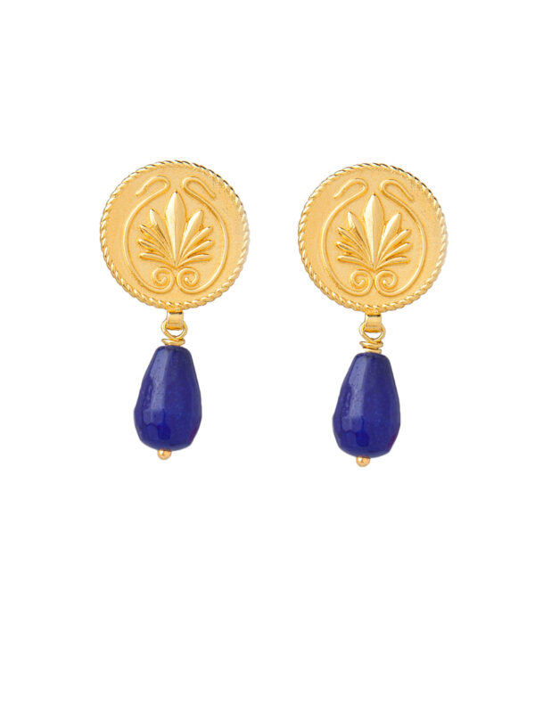 22k gold plated silver 925 Pendant Length : 3,4 cm Pendant Width : 1,7 cm Jade drops in blue color