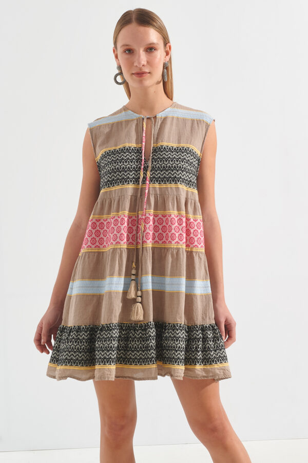Embroidery Dress – 14307N181 – ECRU GOLD